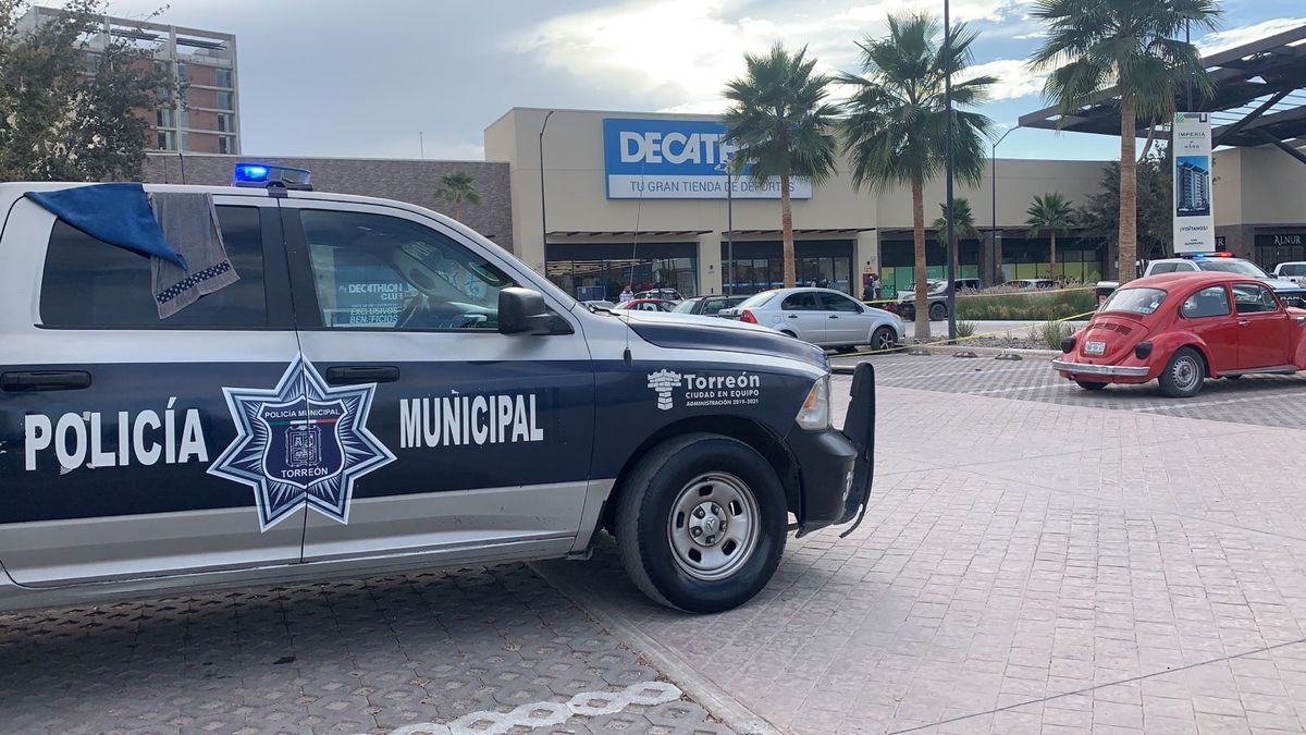 La Secretaría de Seguridad Pública de Coahuila informó que en la plaza comercial elementos policiacos de Torreón y Durango realizaban el aseguramiento de una pareja, pues existe una orden de aprehensión en su contra, cuando uno de ellos respondió agrediendo con arma de fuego. Los agentes de la policía lograron controlar la situación y posteriormente efectuaron el arresto de un hombre y una mujer.