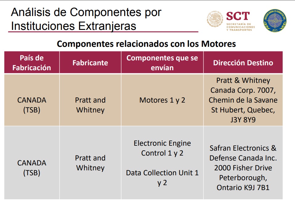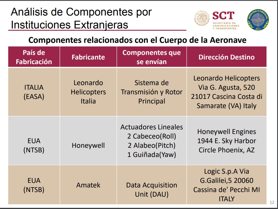 Morán Moguel detalló que el 4 de marzo iniciará la inspección de motores en Montreal, Canadá, en la empresa Pratt & Whitney; mientras que el rotor principal, transmisión y rotor de cola serán revisados en Leonardo Helicopters, Italia, el 18 de marzo y el 1 de abril, en Honeywell Engines, Estados Unidos, se inspeccionarán los actuadores lineales.
