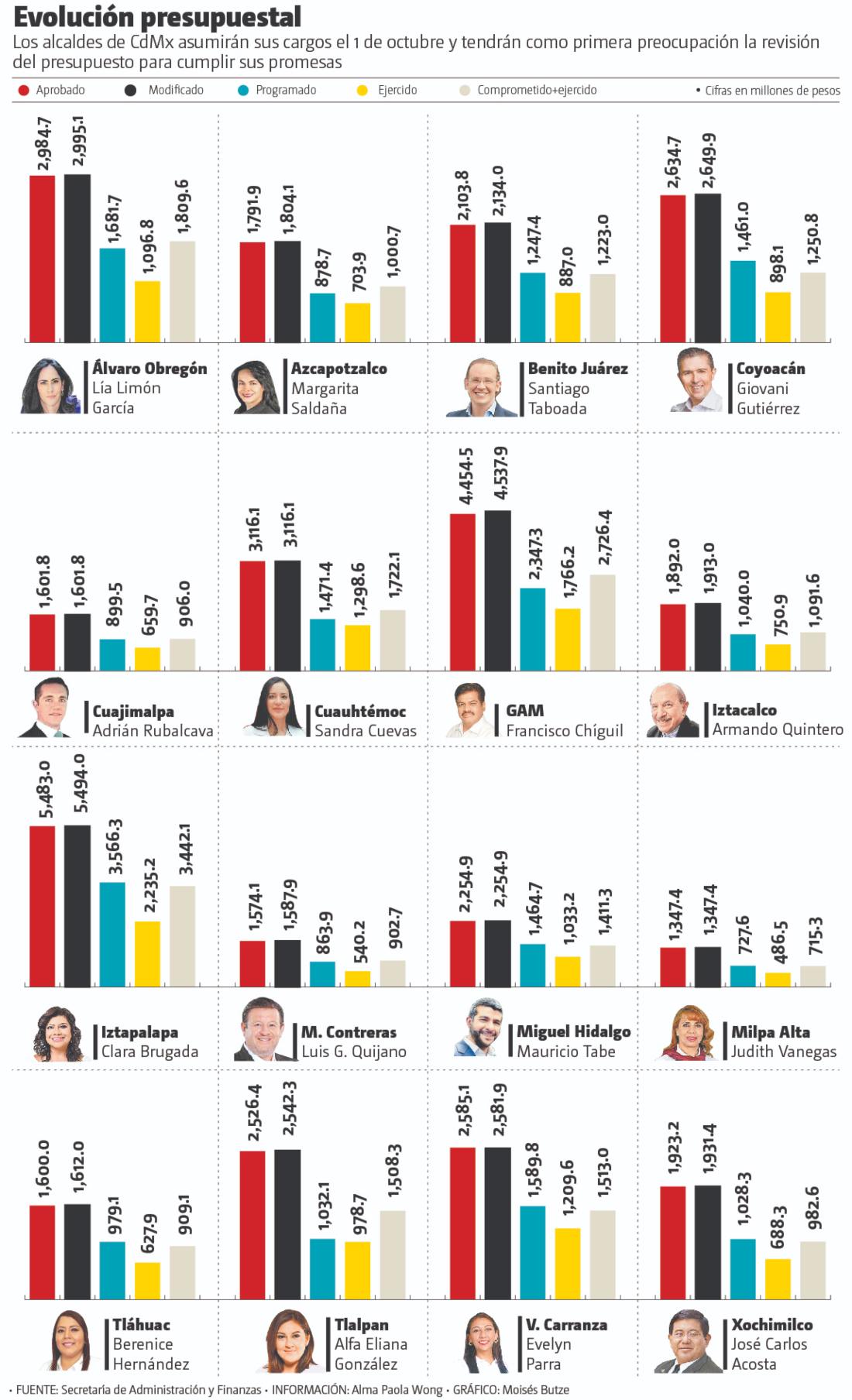 Este 1 de octubre, en la Ciudad de México, siete alcaldes de Morena volverán a asumir en sus despachos y nueve serán del nuevo bloque opositor, y todos, en mayor o menor medida, tendrán como primera preocupación la revisión del presupuesto para cumplir con sus promesas de campaña lo que resta del año.