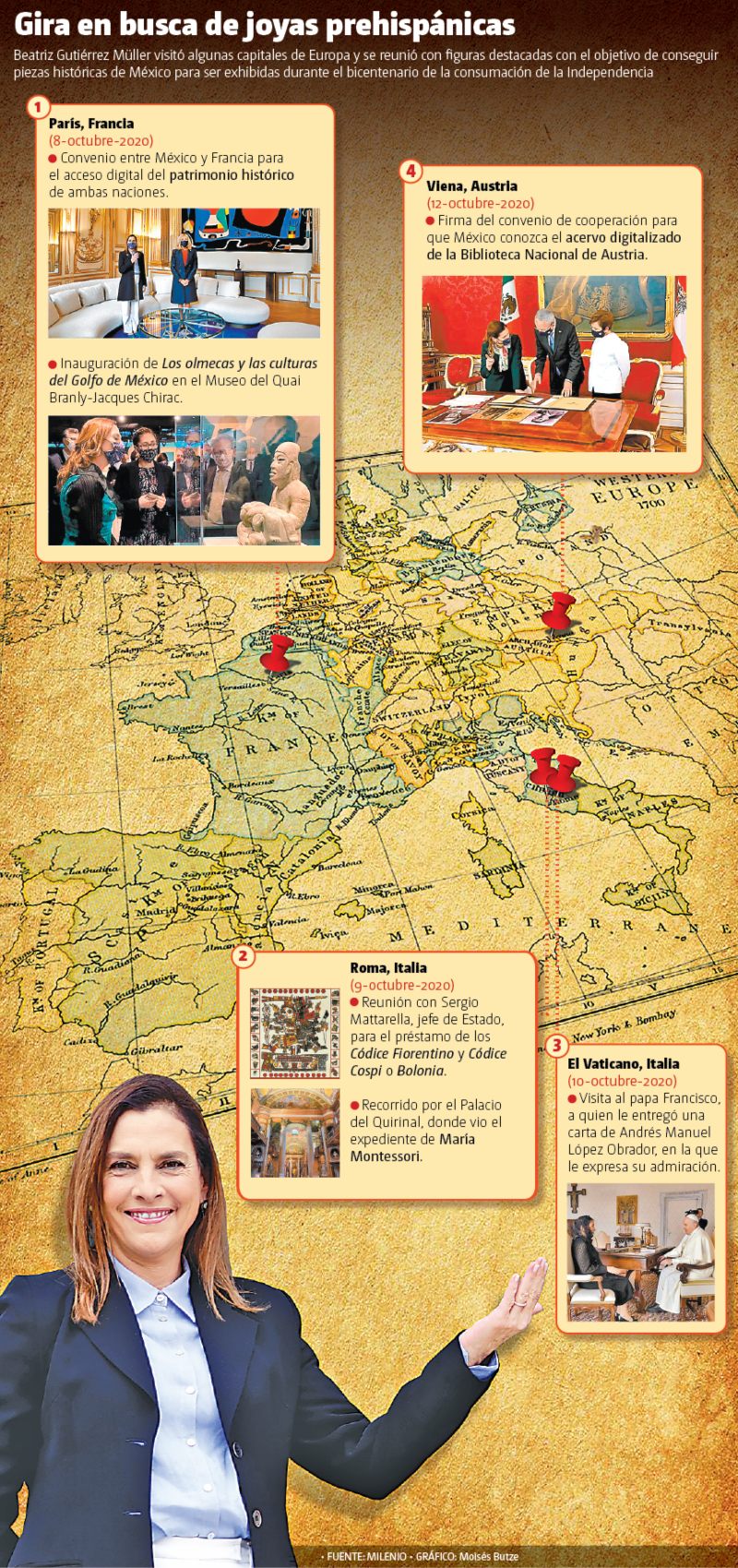 La misión asignada a Beatriz Gutiérrez Müller en su gira por varios países europeos tenía un objetivo claro: conseguir piezas arqueológicas para ser exhibidas en el país. Así, el pasado 8 de octubre en París la escritora participó en la inauguración de la exposición Los olmecas y las culturas del Golfo de México.