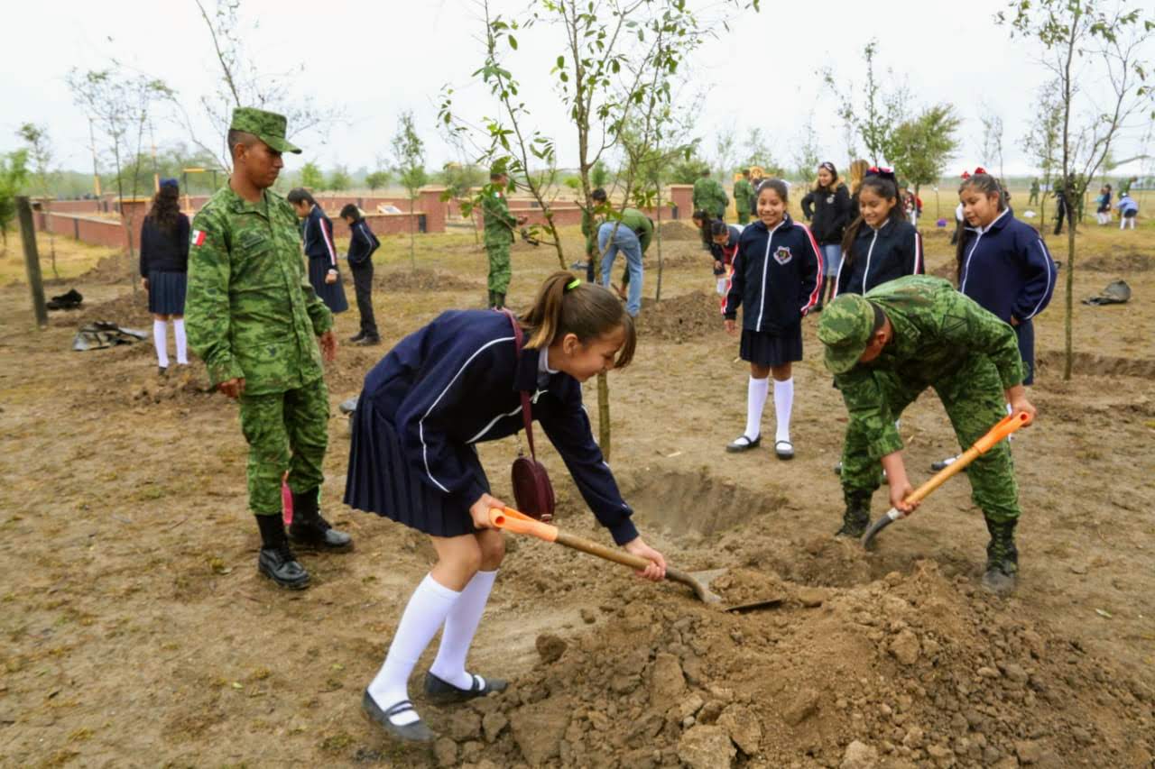 Con la plantación de eucaliptos, nogales y mezquites, el Ejército, la Fuerza Aérea, ciudadanos, empresarios y el Gobierno del Estado arrancaron el Bosque Militar, un nuevo pulmón metropolitano, en el campo militar ubicado en el municipio de Salinas Victoria.