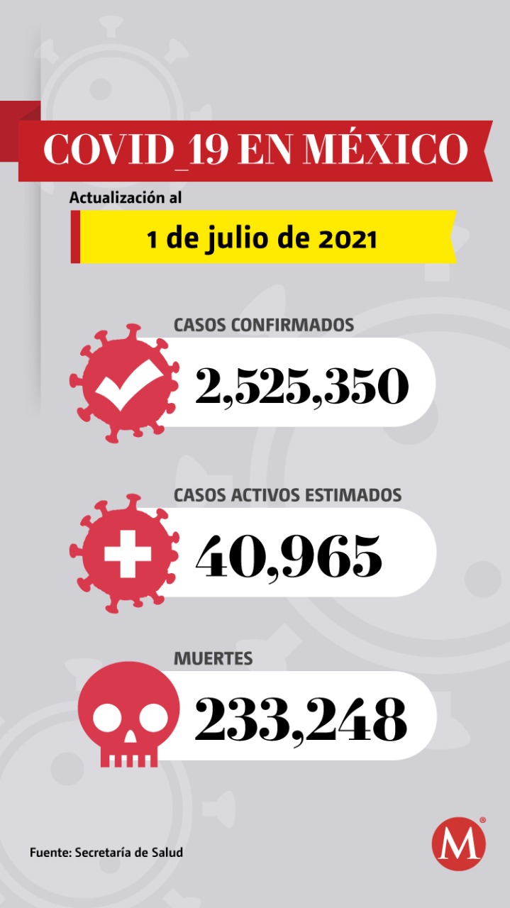 En el documento también se informó que actualmente hay 40 mil 965 casos activos estimados y 2 millones 3 mil 477 personas se han recuperado de la enfermedad.