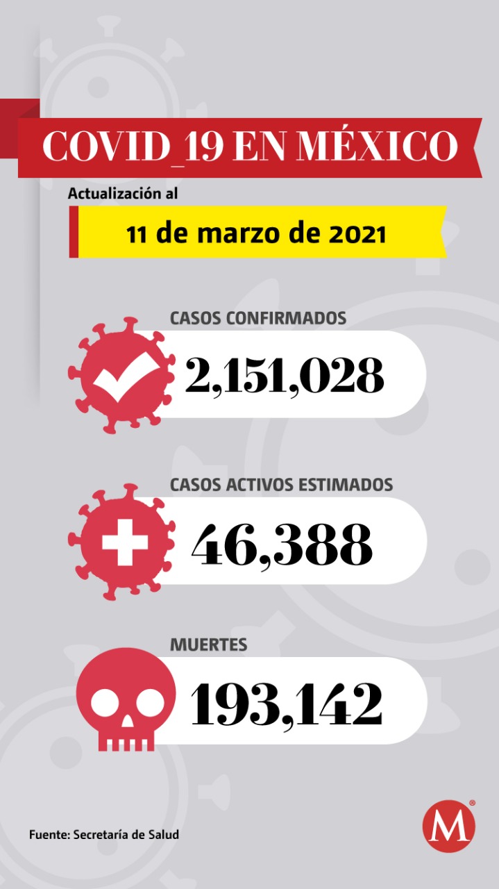 México registró 654 nuevas muertes por covid-19 en un solo día, de acuerdo con el reporte de la Secretaría de Salud que dio a conocer las cifras de la pandemia en el país al 11 de marzo de 2021.