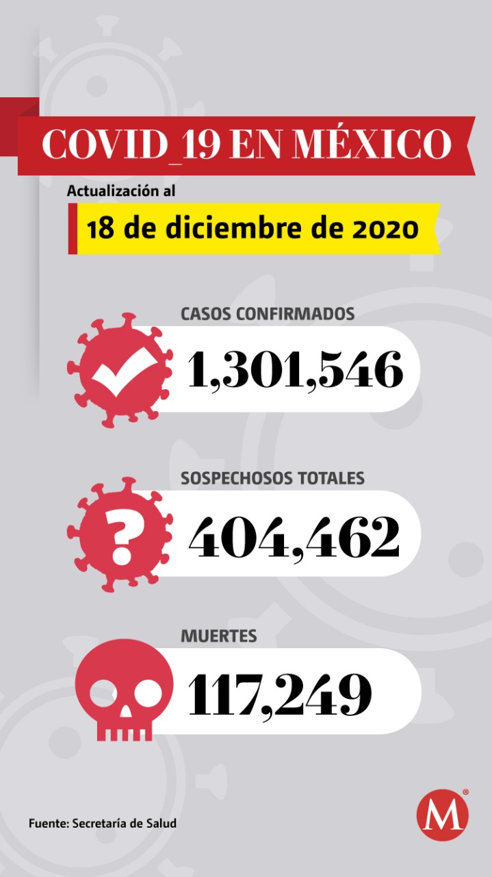 México alcanzó 117 mil 249 muertes por covid-19 este viernes, de acuerdo con el reporte de la Secretaría de Salud que dio a conocer las cifras de la pandemia en el país al 18 de diciembre.