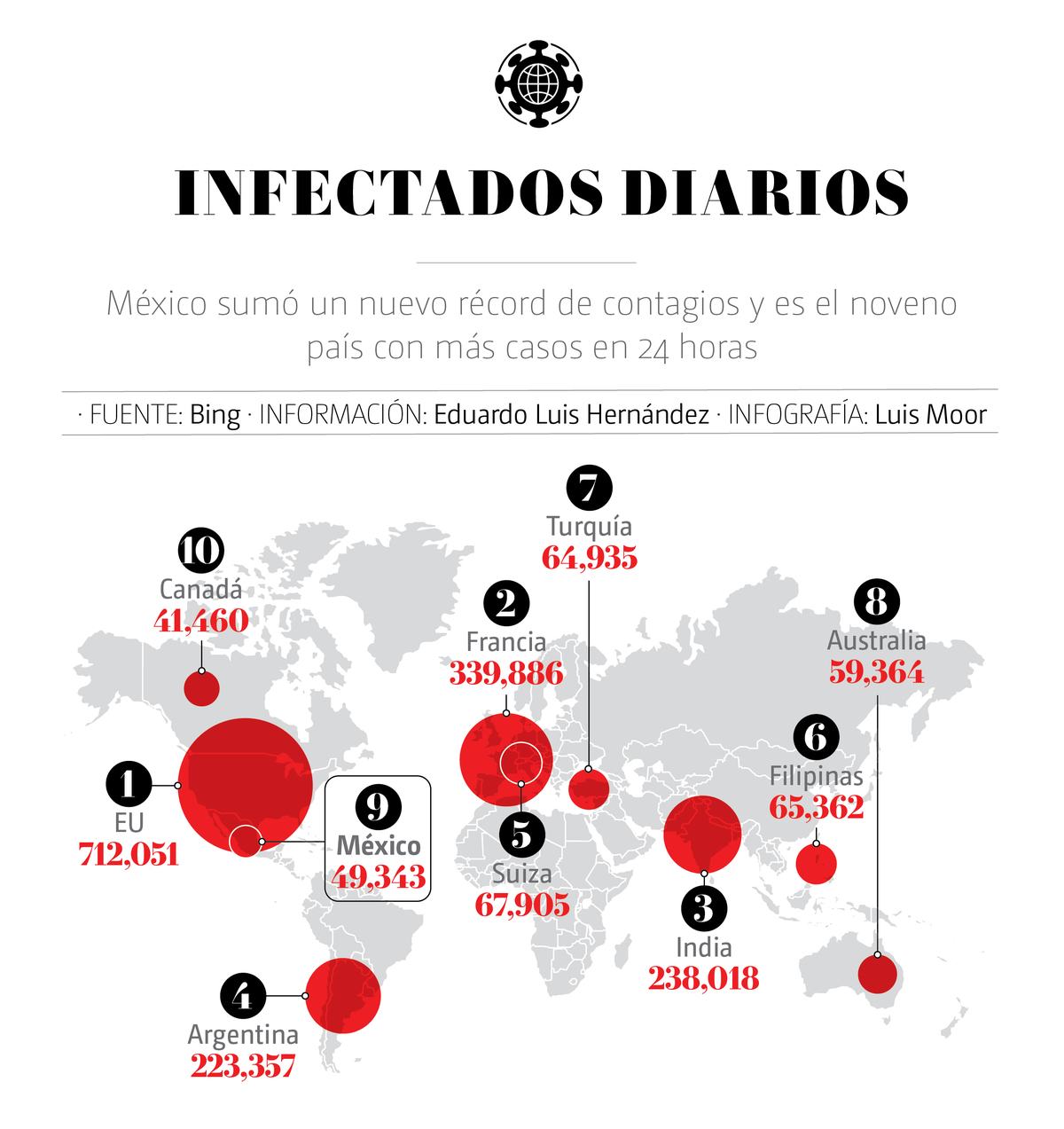 En las últimas 24 horas, México sumó 49 mil 343 nuevos casos de covid-19 y 320 muertes, por lo que el país registró un nuevo récord de contagios diarios, de acuerdo con el informe de la Secretaría de Salud.