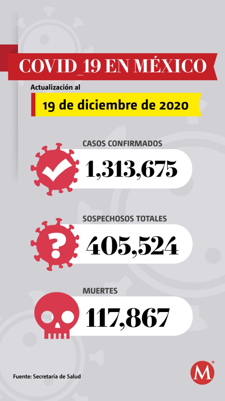 Hoy México registró 117 mil 876 muertes por coronavirus SARS-CoV-2 y acumula un millón 313 mil 675 casos confirmados, de los cuales un millón 645 mil 836 son negativos; además se tienen 405 mil 524 sospechosos, informaron autoridades de la Secretaría de Salud.