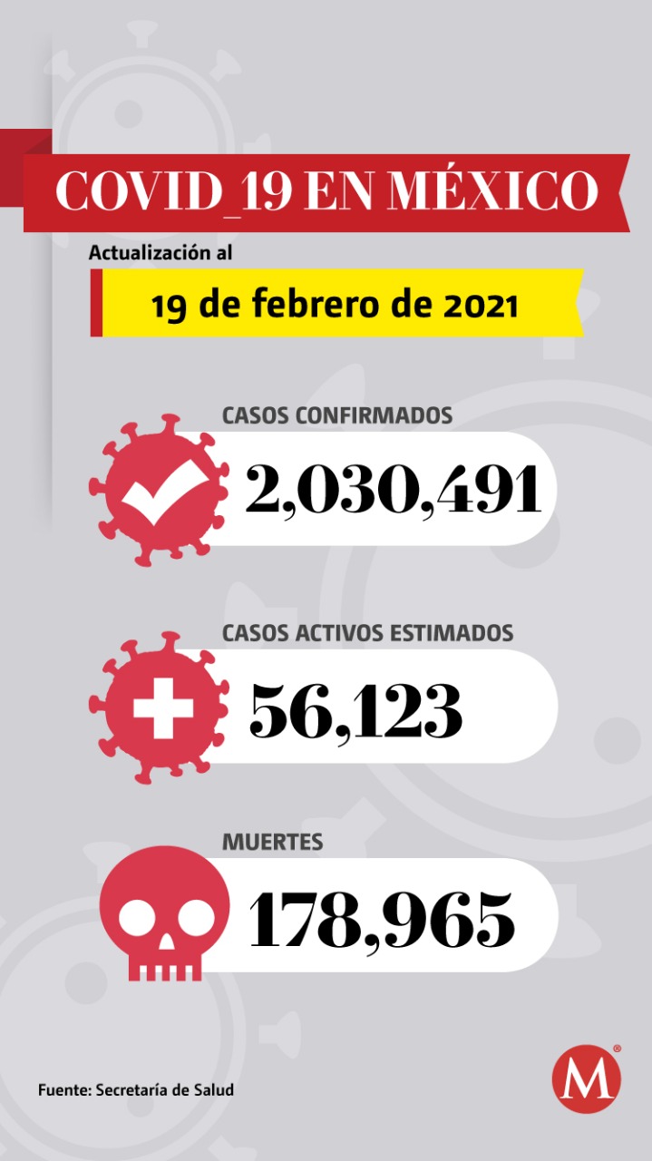 México registró 857 nuevas muertes de covid-19 en un solo día, de acuerdo con el reporte de la Secretaría de Salud que dio a conocer las cifras de la pandemia en el país al 19 de febrero de 2021.