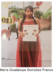 María Guadalupe González Franco desapareció en Salvatierra el 24 de marzo cuando salía de su hogar; tiene 14 años; mide 1.65 m; tiene cabello largo, lacio y de color negro; sus ojos son grandes y café oscuro. Llevaba un pantalón de licra beige, tenis blancos y mochila morada.