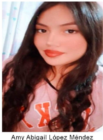 A Amy Abigail López Méndez, de 16 años, no se le ha visto desde que salió de su hogar en Villagrán el 17 de marzo. Su tipo de cabello es largo, lacio y de color negro; sus ojos son grandes y café oscuro; su estatura de 1.58 m.