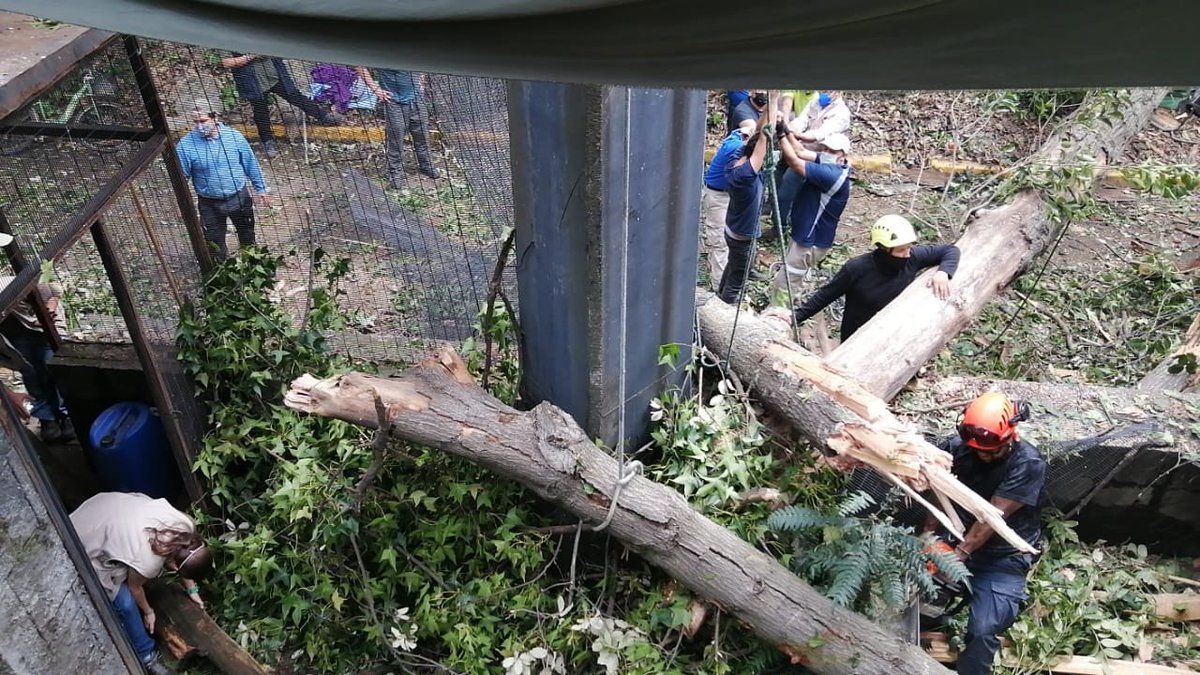La dependencia dio a conocer que el percance se registró alrededor de las 13:50 horas, cuando un encino de aproximadamente 26 metros de altura cayó en la zona de servicio del aviario del zoológico, sin que se registraran personas ni animales lesionados.