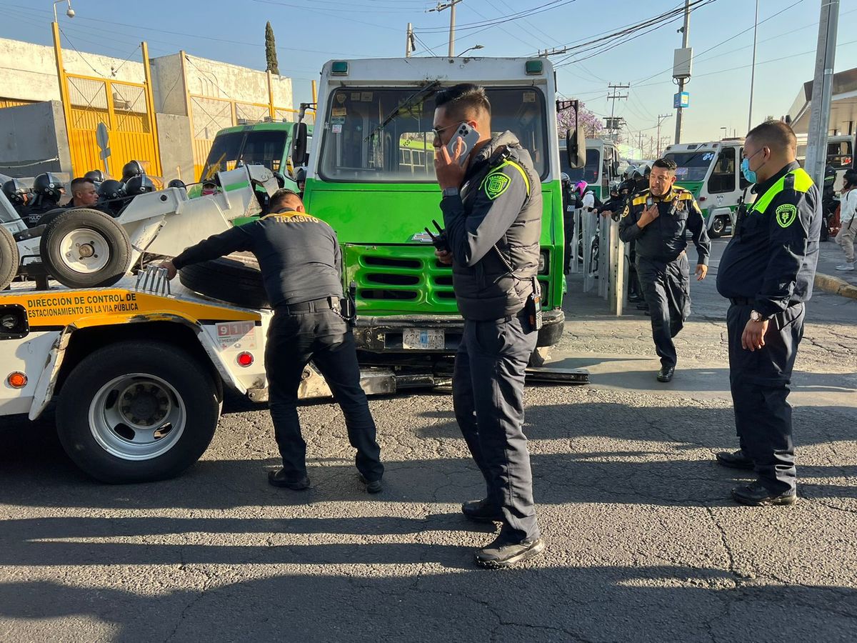 Luego de varios minutos de plática con autoridades, cerca de 60 elementos policíacos llegaron a encapsular las unidades y a retirarlas con grúas con el objetivo de recuperar la movilidad en el punto, ya que el impacto vial era considerable.