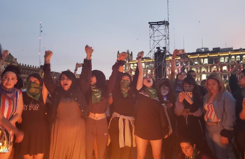Gritando consignas como "¡Pendejo no, te digo que no, mi cuerpo es mío yo decido, tengo autonomía, yo soy mía! ¡Qué te digo que no!", las mujeres cantaban en el Zócalo capitalino.