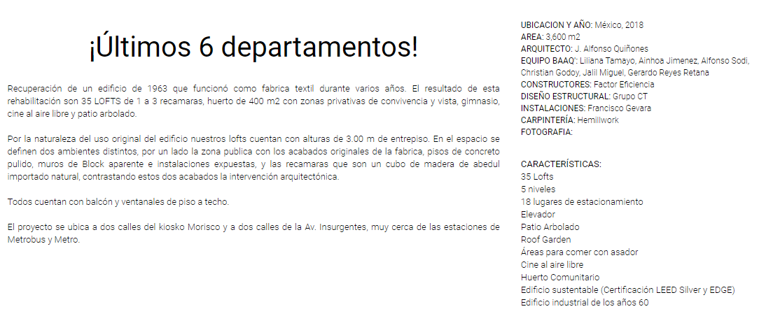En su página de internet, la empresa BAAQ anuncia desarrollos inmobiliarios en la Ciudad de México como los de las calles Dr. Atl, Nogal y Cedro, en Santa María la Ribera; así como en Córdoba, en la colonia Roma.