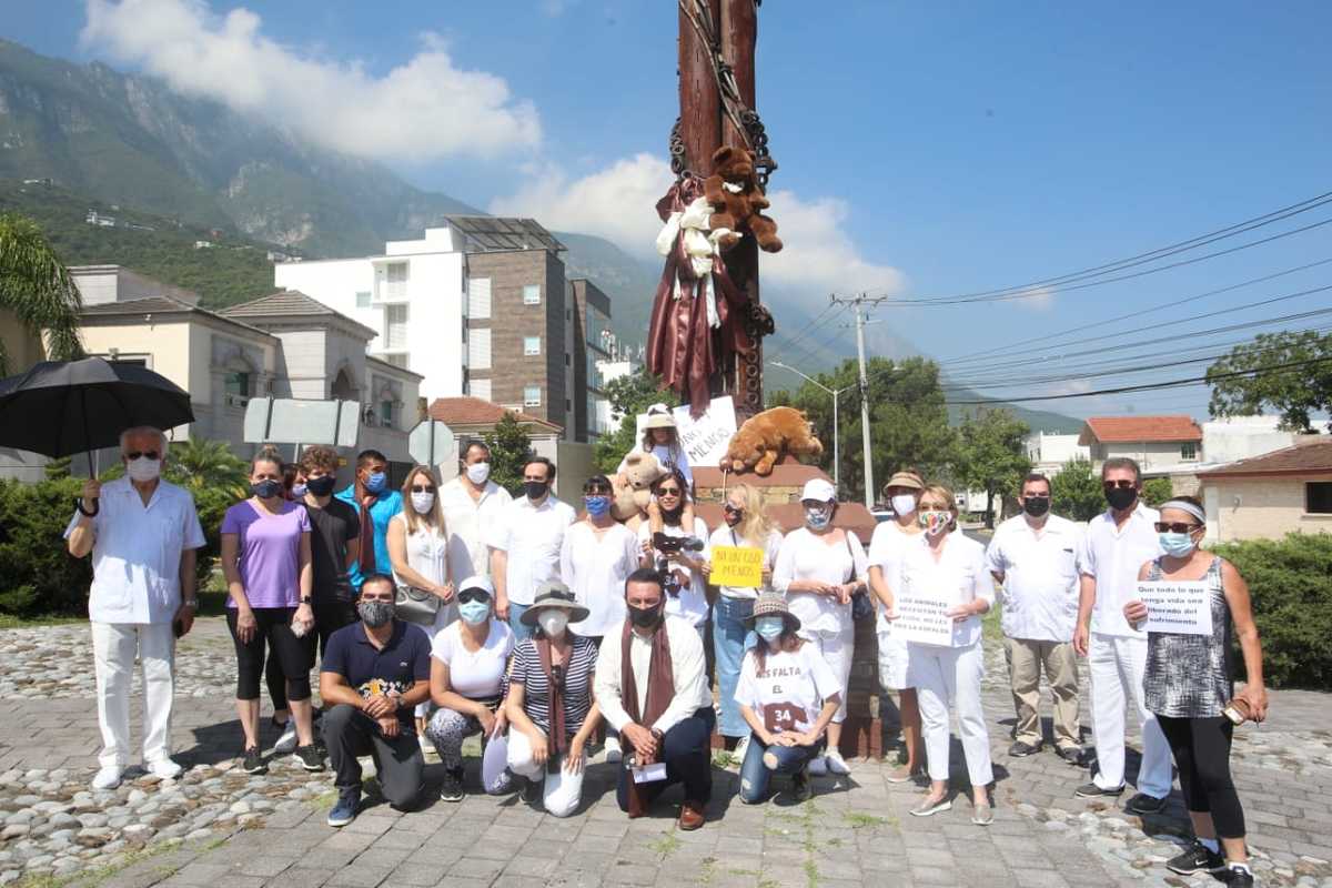 La protesta se realizó en la rotonda Monumento al Ángel, ubicada en el cruce de las avenidas Roberto Garza Sada y Jerónimo Siller.
