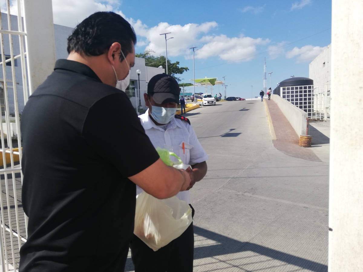Jorge Luis, además entregó tacos al cuerpo de seguridad del hospital Dr. Carlos Canseco, pues ellos también pasan largos tiempos sin poder comer y esto, dijo, les ayudará.