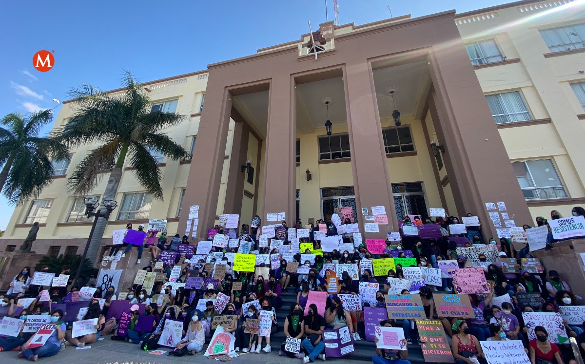Un grupo de mujeres protestaron frente a la Presidencia Municipal de Reynosa en el marco de las movilizaciones por el 8M, pidieron un alto a la violencia contra el género.