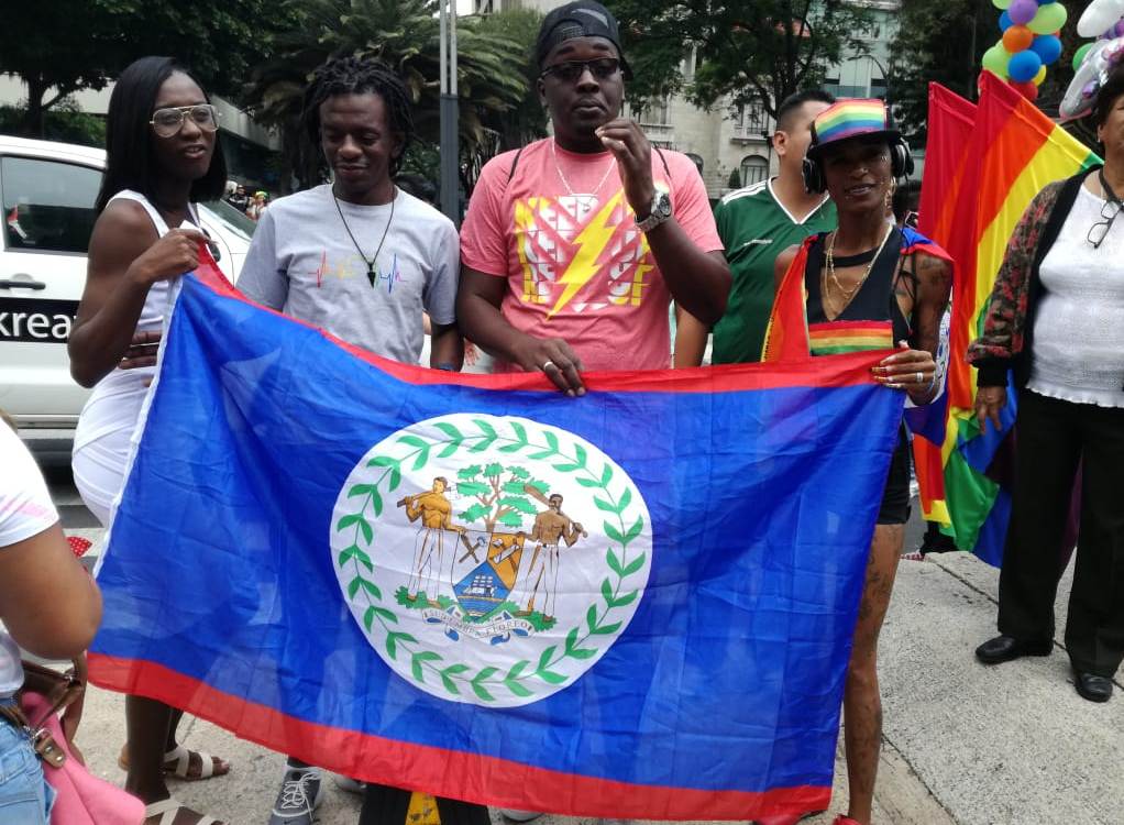 Kevin, originario de Belice, y sus amigos participan en la marcha desde hace cuatro años.