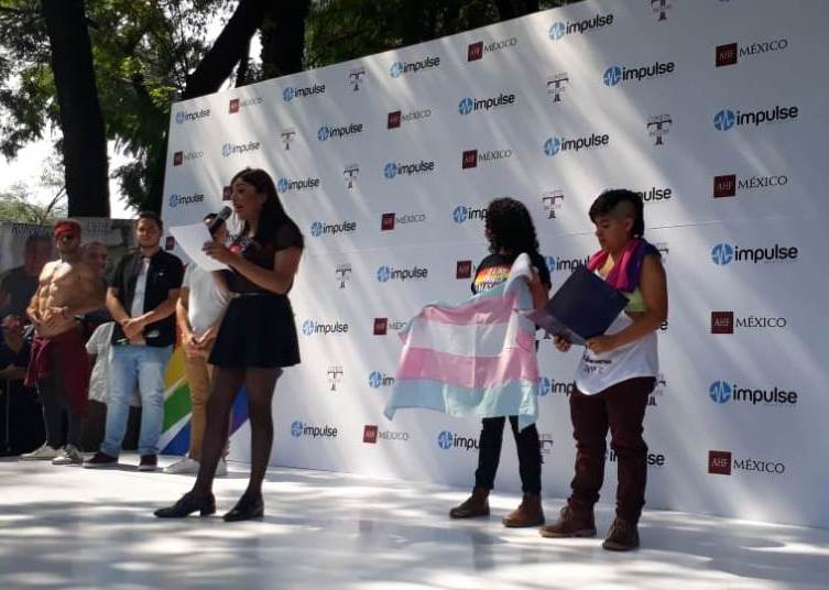 Tras su discurso, Nashieli Ramírez, se unió a la marcha, acompañada de Jaqueline L,Hoist, de Copred, y Alejandra Haas de la Conapred, con la bandera del orgullo LGBTTTI.