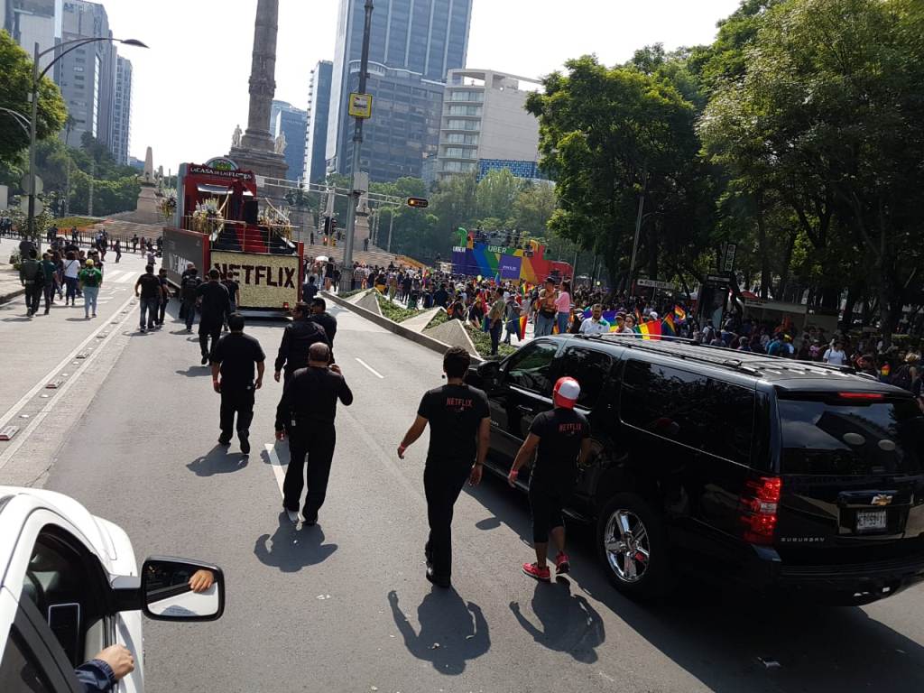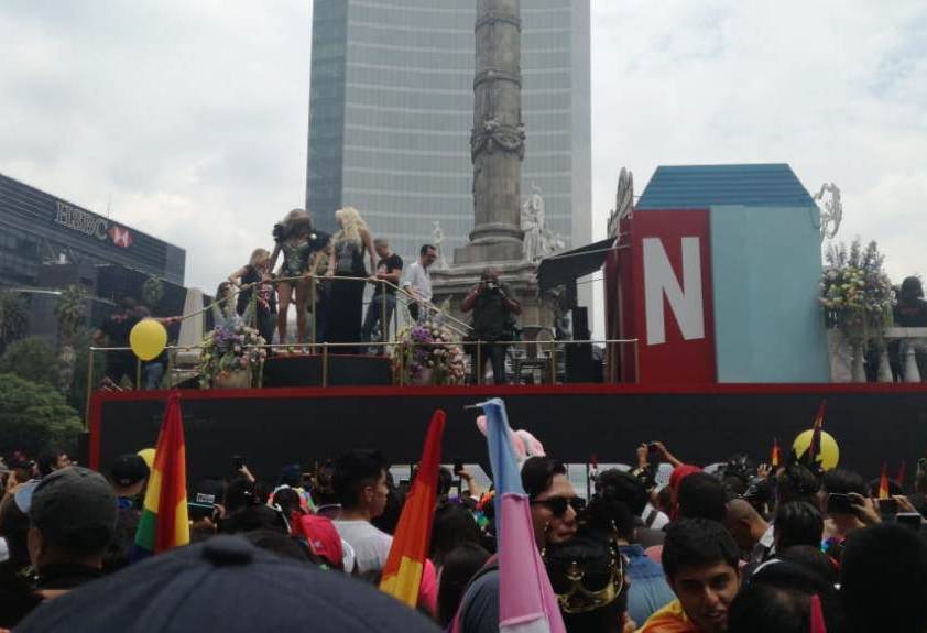Llega el carro alegórico de Netflix a la Marcha del Orgullo Gay.
