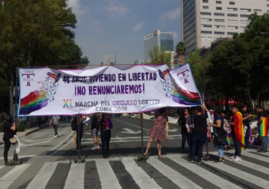 Militantes del Comité Incluye llegan a la Marcha del Orgullo Gay.