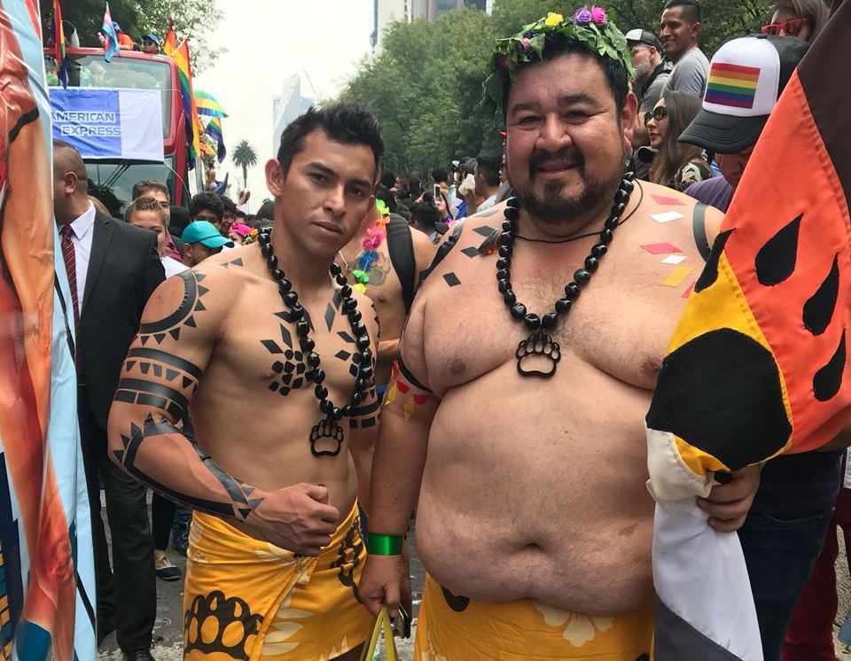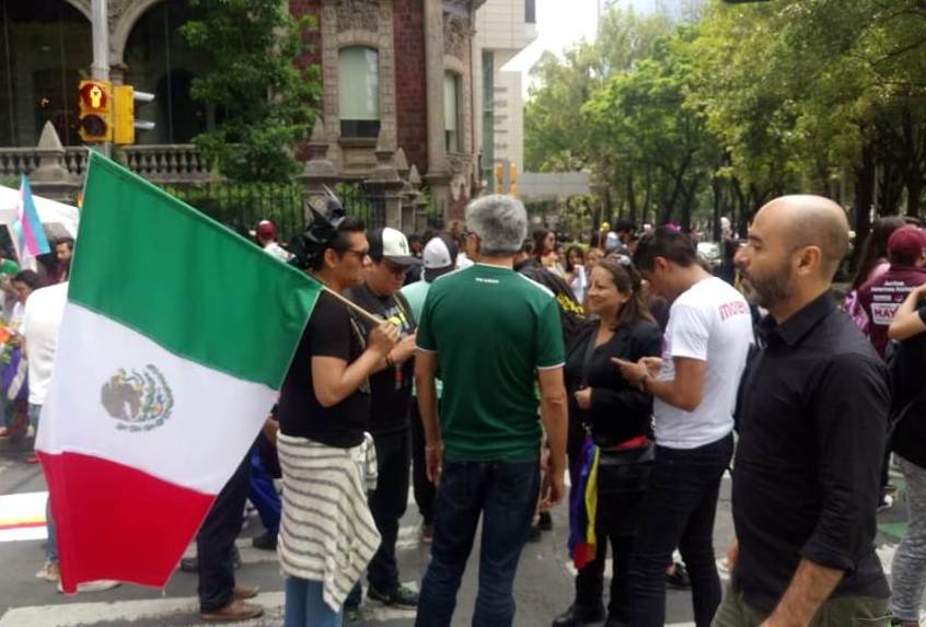 Algunos de los participantes de la marcha gay cargan la bandera de México, para también celebrar el trinfo de la Selección Mexicana sobre Core del Sur.