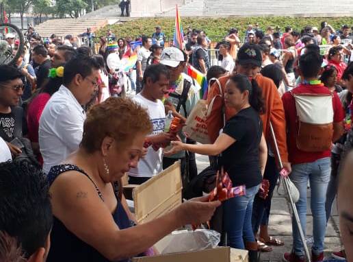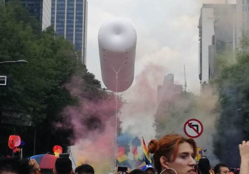 Organizaciones regalan condones en el Ángel a los asistentes.