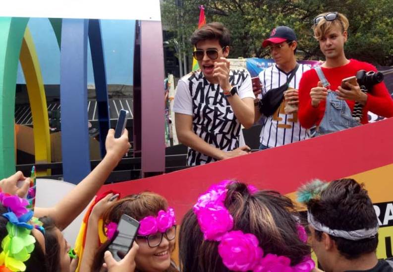 El YouTuber venezolano La Divaza, atiende a sus fans en la marcha gay. Fue ganador en los MTV miaw 2018 como icono digital.