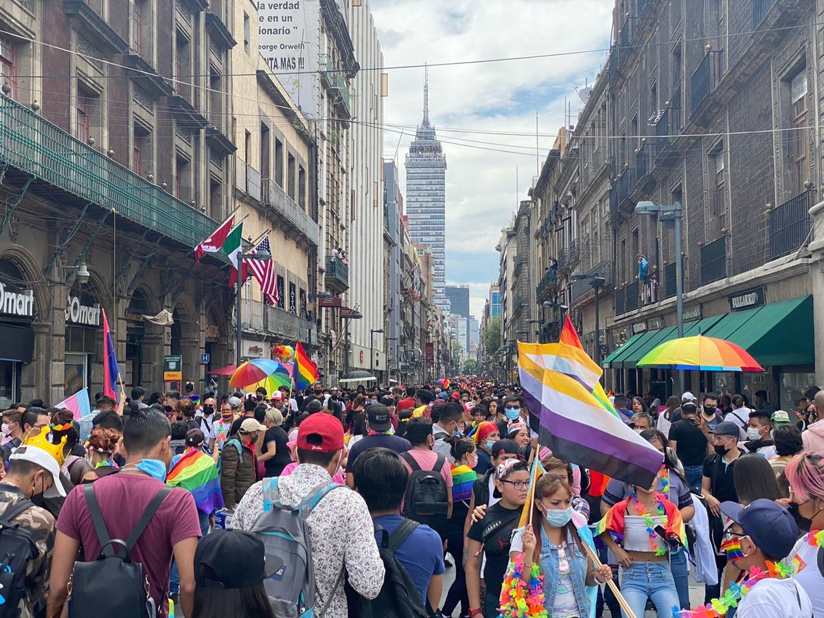 ¿Y la sana distancia? Abarrotan calle Madero durante marcha LGBT+