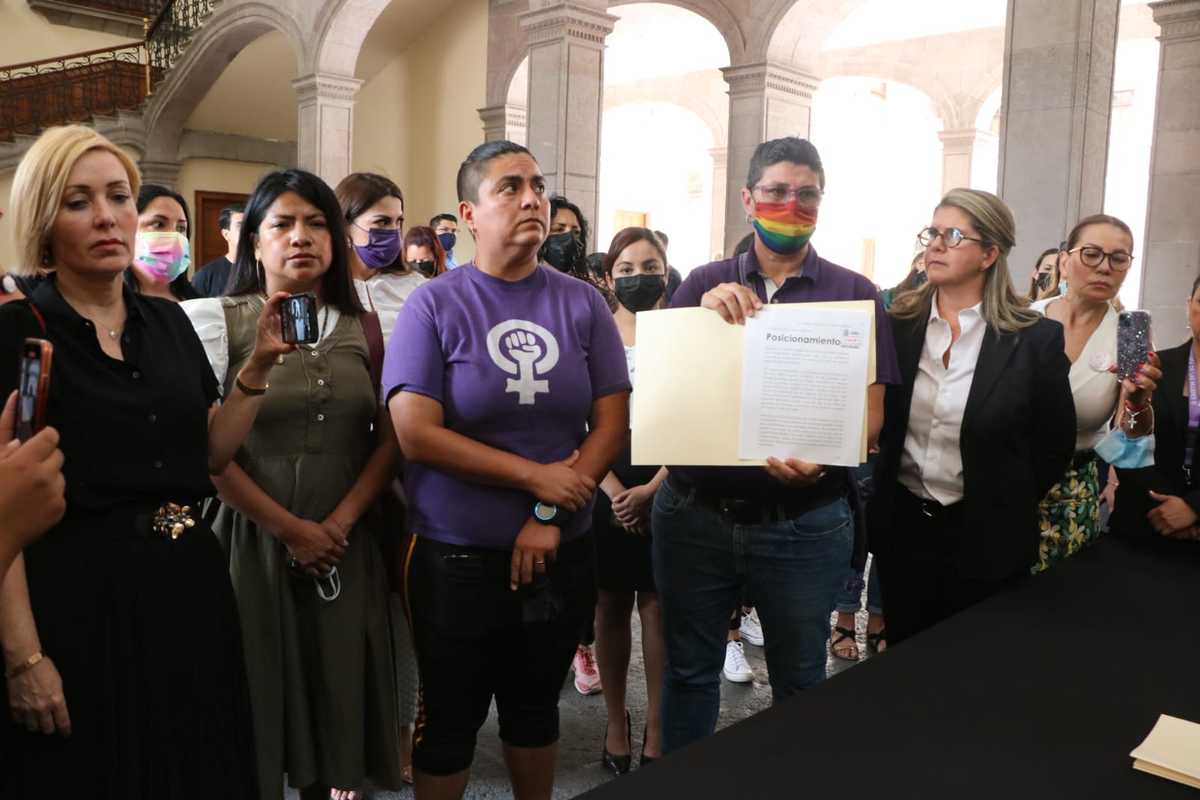 Samuel y Mariana escuchan las de las manifestantes en palacio de Gobierno