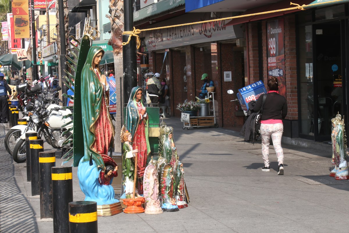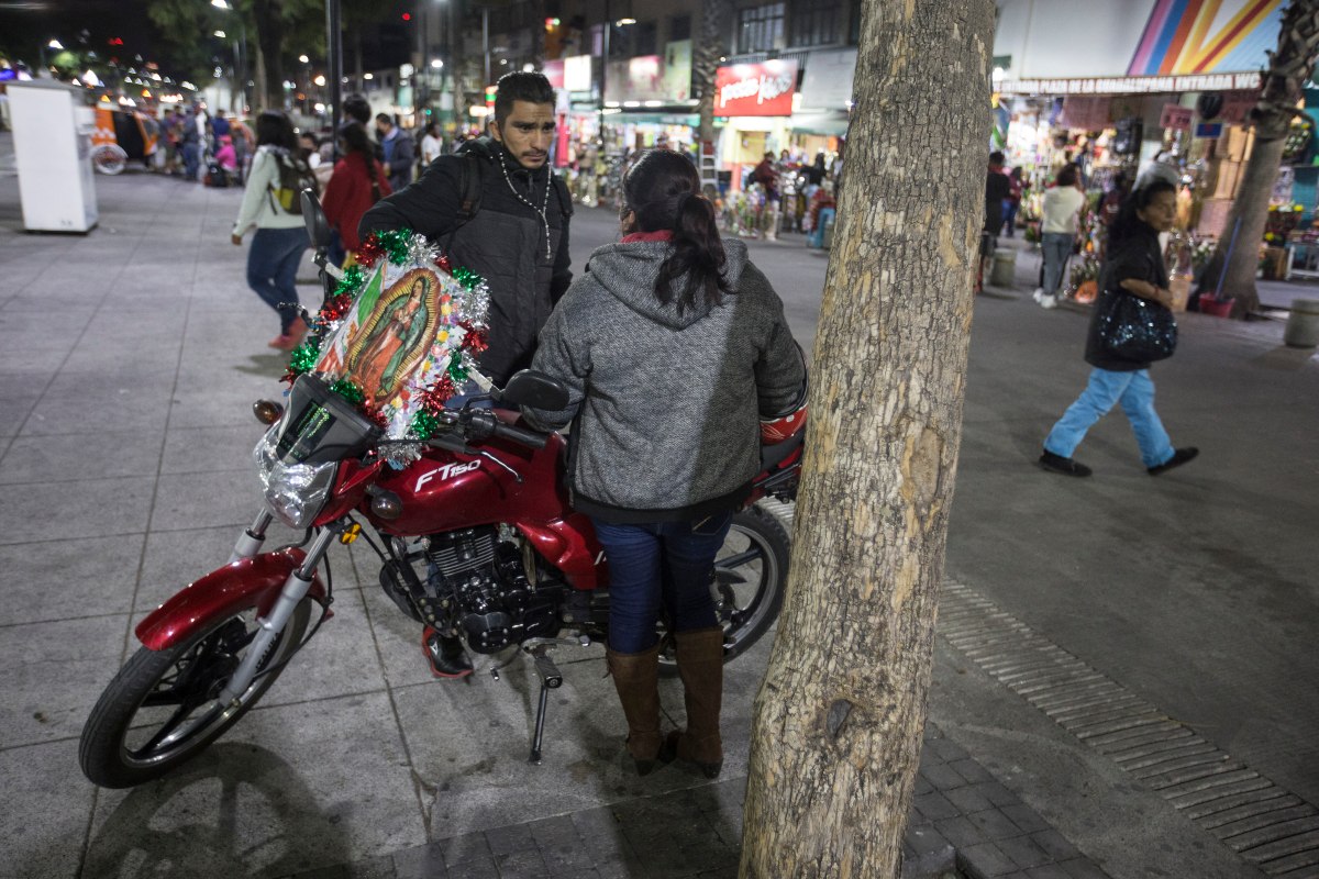 A estas horas, pasadas las 11 de la mañana del 11 de diciembre, “ya hubiera vendido más de 100 veladoras, ¿y sabe cuántas llevo? Ninguna”, te dice F, la vendedora de Valentina Recuerdos, objetos religiosos que van desde las bolas de cristal donde la virgen es golpeada por una tormenta de nieve hasta vírgenes de dos metros, pese a que la leyenda dice que no era muy alta.