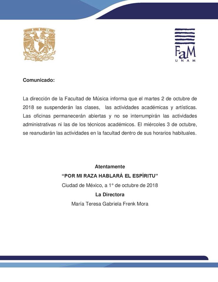 — FES ACATLÁN - UNAM (@FES_ACATLAN) October 2, 2018