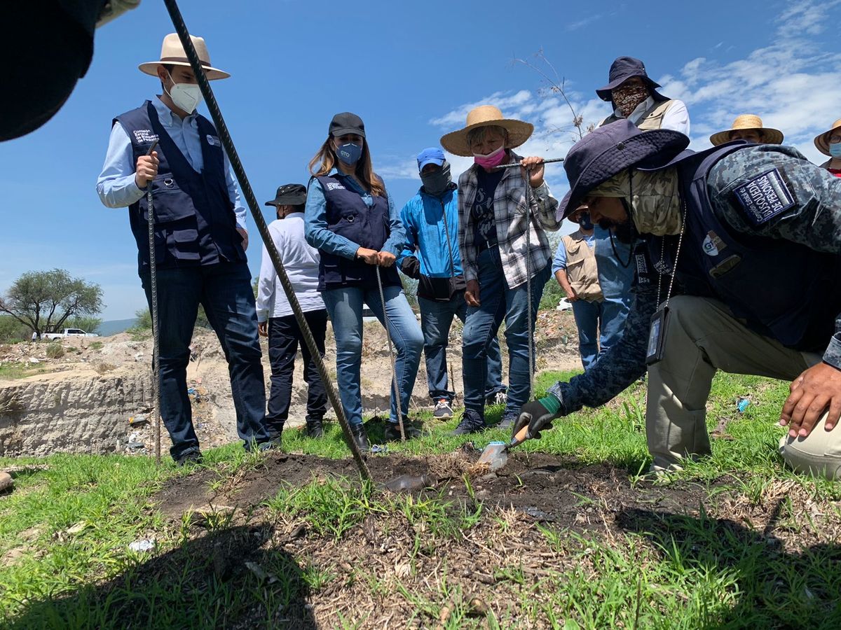 En una acción no vista por parte de funcionarios de primer nivel de gobierno, la tarde de este jueves la secretaria de Gobierno del estado de Guanajuato, Libia García, salió al campo y en conjunto con colectivos se dedicó a la ardua labor de buscar puntos positivos donde probablemente podrían detectarse restos humanos.