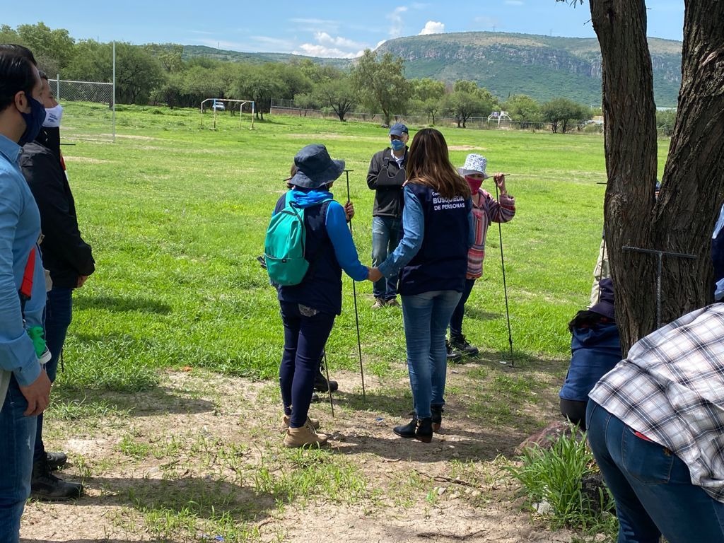 Varilla en mano, al igual que el resto de los acompañantes y enfundada en un chaleco en el que se leía Comisión Estatal de Búsqueda, Libia se dedicó a explorar el paraje en el que se realizó la búsqueda, mismo que no fue dado a conocer por cuestiones de seguridad.