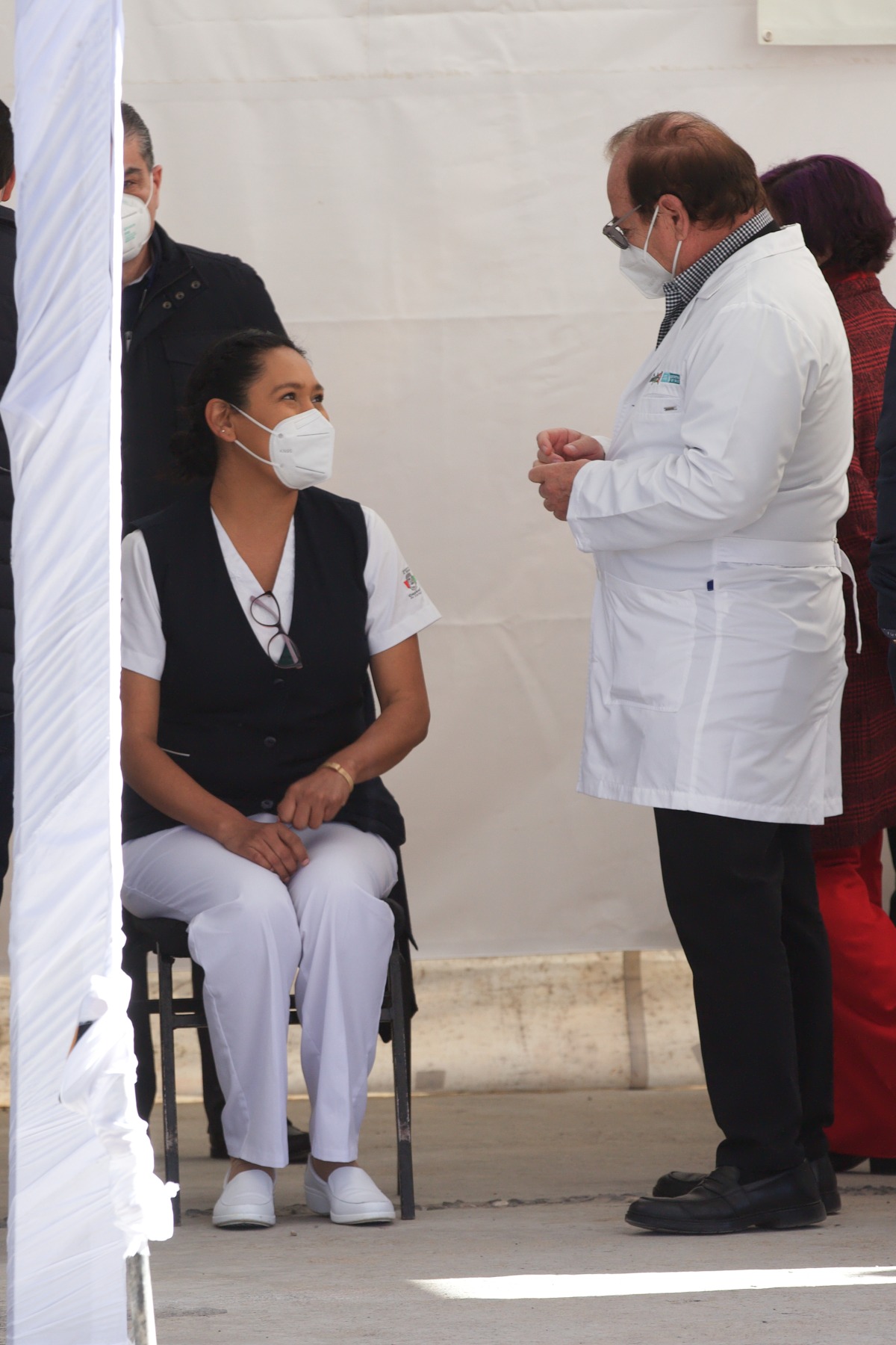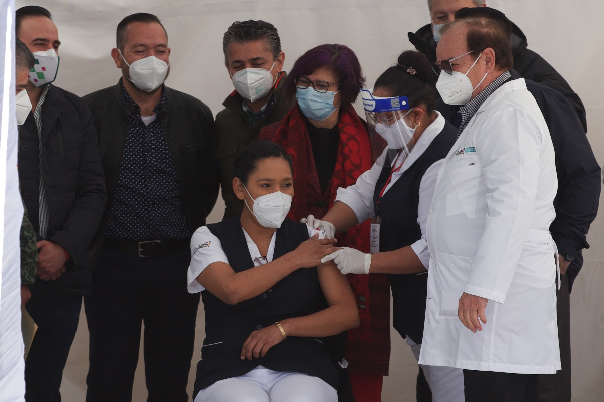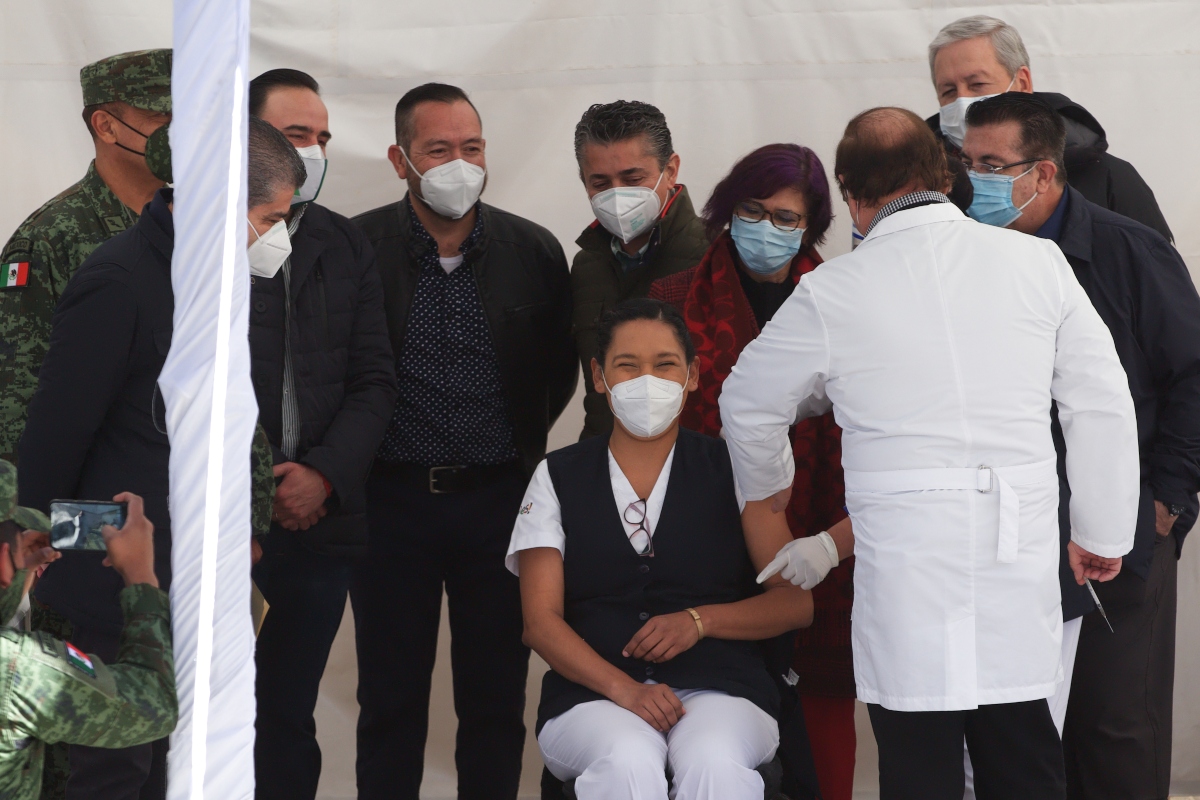 “Pero aquí estamos, cumpliendo con mi deber”, dice la mayor médica cirujana Saraí Jiménez Jalixto tras recibir la vacuna anticovid como una de las primeras 30 beneficiarias en el norte del país.