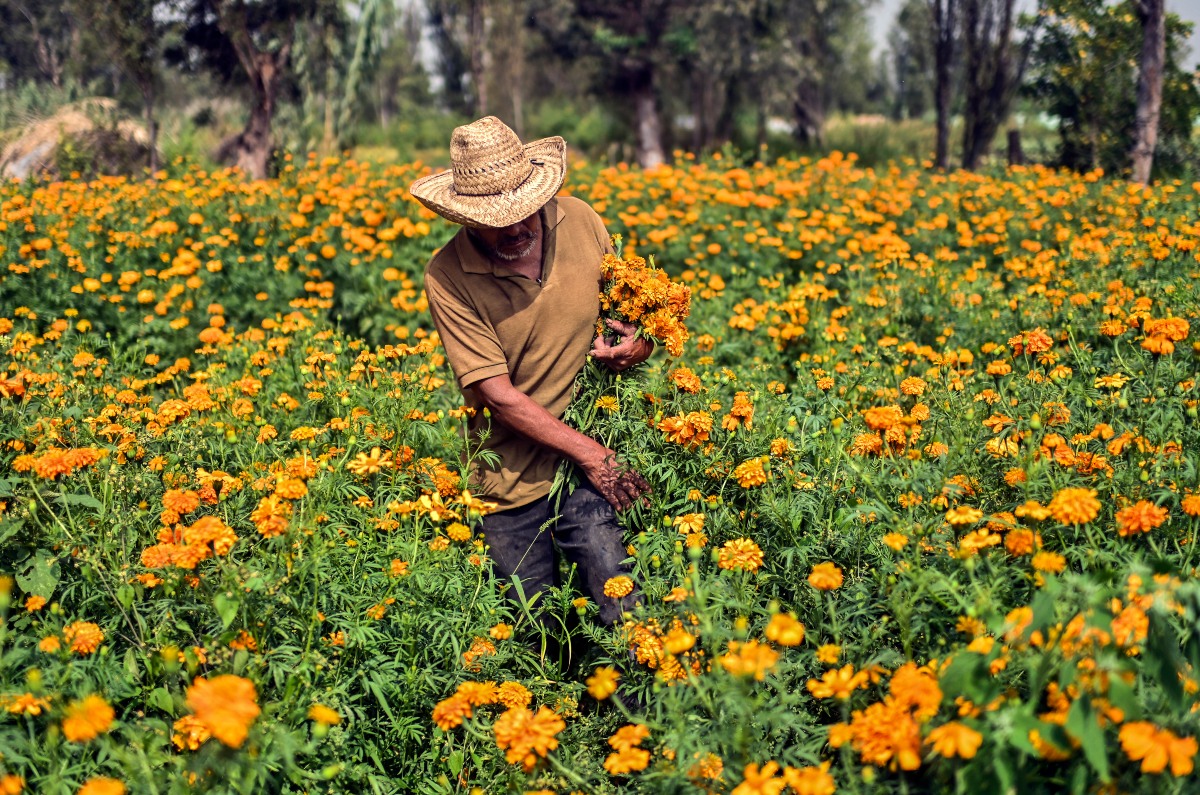 Ricardo Sánchez, floricultor del barrio de San Lorenzo, en esta reserva natural del sur de la Ciudad de México, no recuerda una temporada de corte de la aromática flor tan crítica como la que ha desatado el nuevo coronavirus.