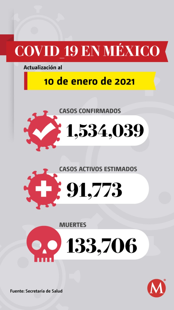 México suma 133 mil 706 muertes por covid-19 este domingo, de acuerdo con la información proporcionada por la Secretaría de Salud. El país ha alcanzado millón 534 mil 39 casos confirmados casos por coronavirus SARS CoV-2.