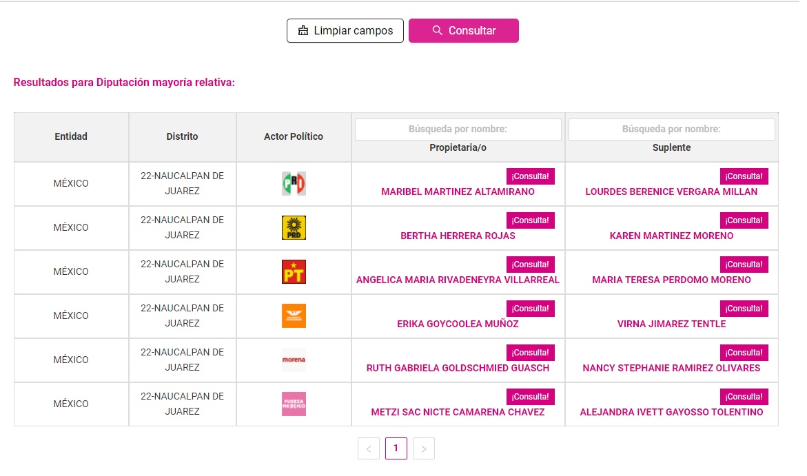 De manera automática se mostrará un listado de quiénes son los candidatos o candidatas que buscan ganarse el voto de la gente y del mismo modo representarlas.