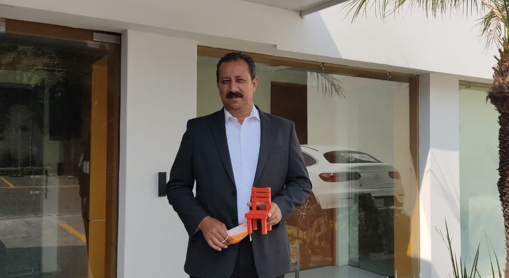 El emecista acudió al #ForoMETA21 con silla en mano, pues argumentó que sus lemas de campaña son “La cosa es sencilla, quitémosle la silla” y “Les quedó grande la silla (de la presidencia municipal)” debido a que él es mueblero.