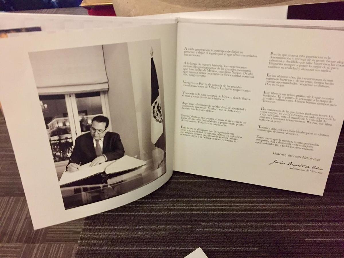 Los párrafos siguientes también parecerían un mal augurio de las complicidades entre autoridades “Este libro es un relato gráfico de lo que hemos estado haciendo... da testimonio de lo que juntos podemos hacer... Estoy cierto que las que la nuestra, es una generación comprometida y destinada a crear mejores oportunidades para todos los veracruzanos”.