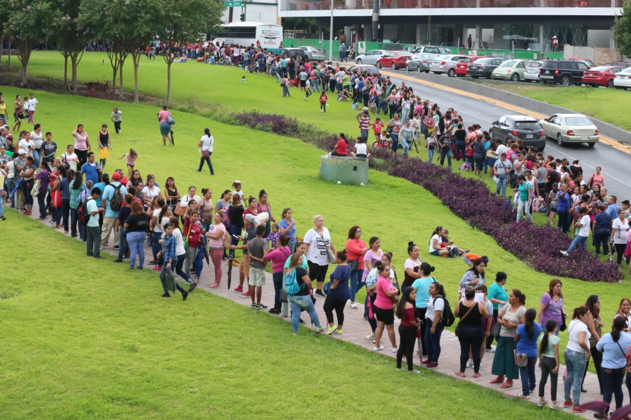 A decir de Genaro Alanís, secretario de Desarrollo Social del Estado, desde las 4:00 horas madres de familia se encontraban haciendo fila para canjear el bono de 300 pesos que el Gobierno les dio por útiles escolares en la feria que está instalada en la Explanada de los Héroes.