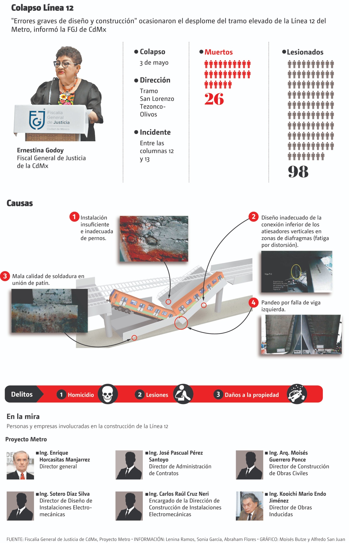No obstante, la dependencia que encabeza Ernestina Godoy perfila un acuerdo de reparación del daño para evitar un proceso largo y complicado. Las conclusiones confirman lo publicado por MILENIO el pasado 28 de mayo, en el sentido de que una falla en la soldadura de los pernos que unían la trabe es la razón fundamental del colapso.