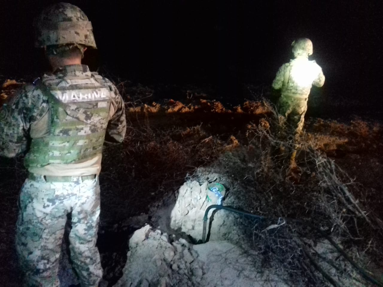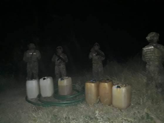 Al revisar el interior, los marinos localizaron una excavación con medidas irregulares y una toma clandestina de hidrocarburo con una válvula de cierre, por lo que aseguraron la toma e informaron al personal de Pemex para la clausura de la misma. Los presuntos delincuentes se dieron a la fuga en diferentes vehículos.