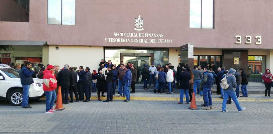 Los profesores y personal administrativo de las 34 prepas establecidas en la entidad, que en total suman 850 afectados, inicialmente se apostaron frente al edificio sede de la Tesorería General del Estado, ubicada en la calle Escobedo No. 333, en espera de ser atendidos por el tesorero Carlos Garza Ibarra.