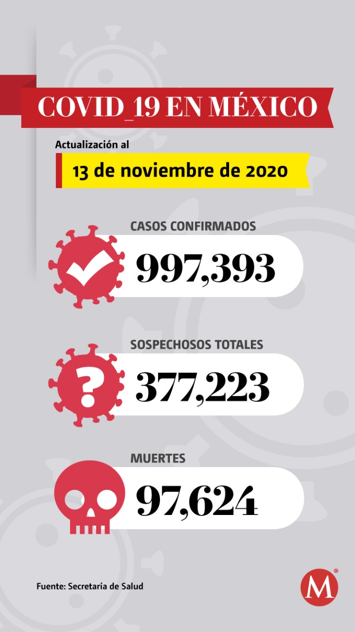 Autoridades de la Secretaría de Salud dieron a conocer las cifras de la pandemia de coronavirus en México al 13 de noviembre, reportando: