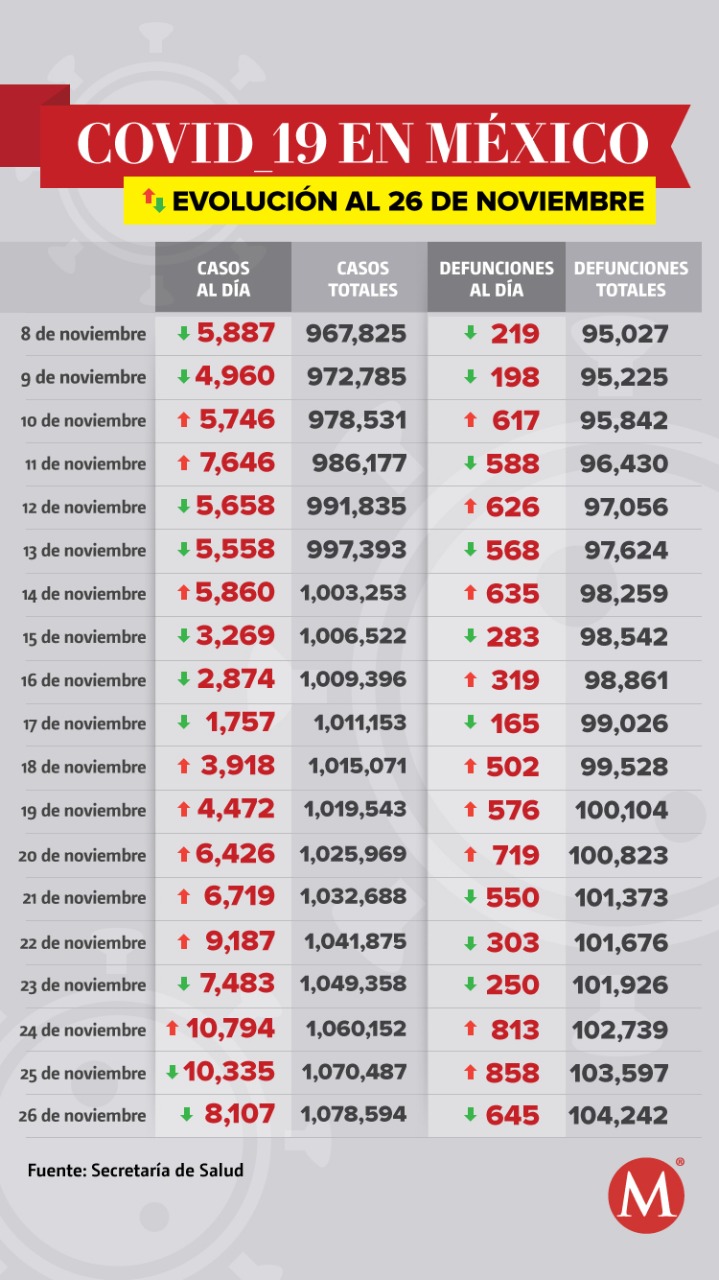 José Luis Alomía, director general de Epidemiología, destacó que al corte de hoy se registraron en el sistema 645 nuevas muertes y 8 mil 107 nuevos casos de covid-19.