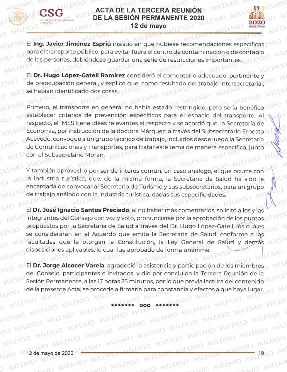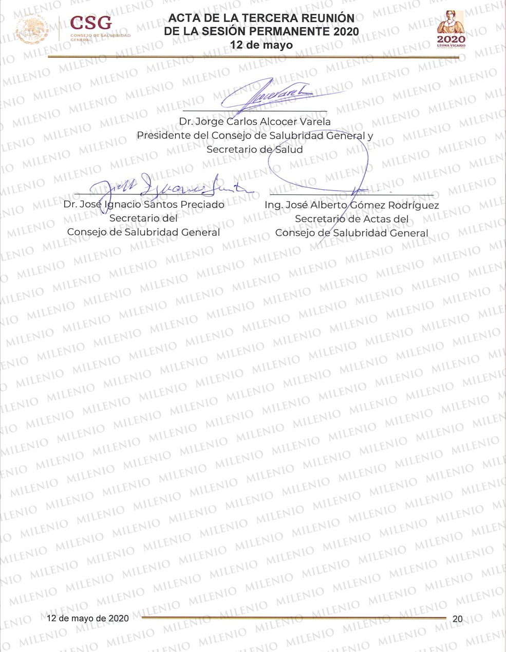 El reloj marcaba las 16:00 horas del martes 12 de mayo del 2020, a través de una videoconferencia comenzaba la tercera reunión de la sesión permanente del Consejo de Salubridad General en la que participaron sus integrantes y vocales titulares, es decir, secretarios de Estado y autoridades del sector salud.