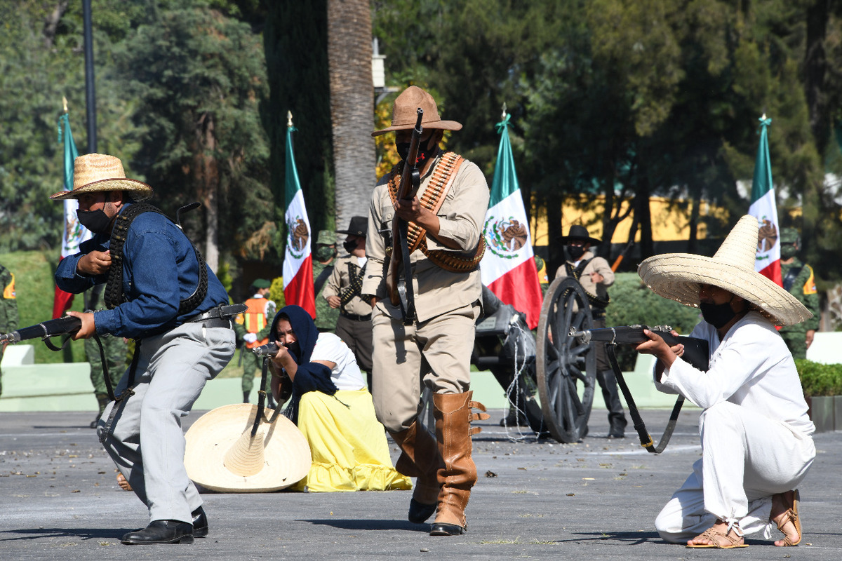 Durante un ensayo realizado hoy en el Campo Militar 1-A, se informó que, como es costumbre, se incluirá la representación de algunas escenas históricas de la lucha armada de 1910 con la participación de unos 400 elementos del Ejército, Fuerza Aérea Mexicana, Marina Armada y la Guardia Nacional.