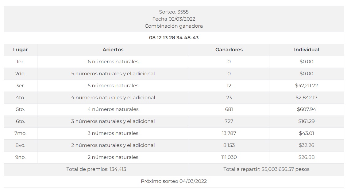 En esta ocasión, el total a repartir es de 5 millones 3 mil 656.57 pesos en el sorteo 3555 de Melate.