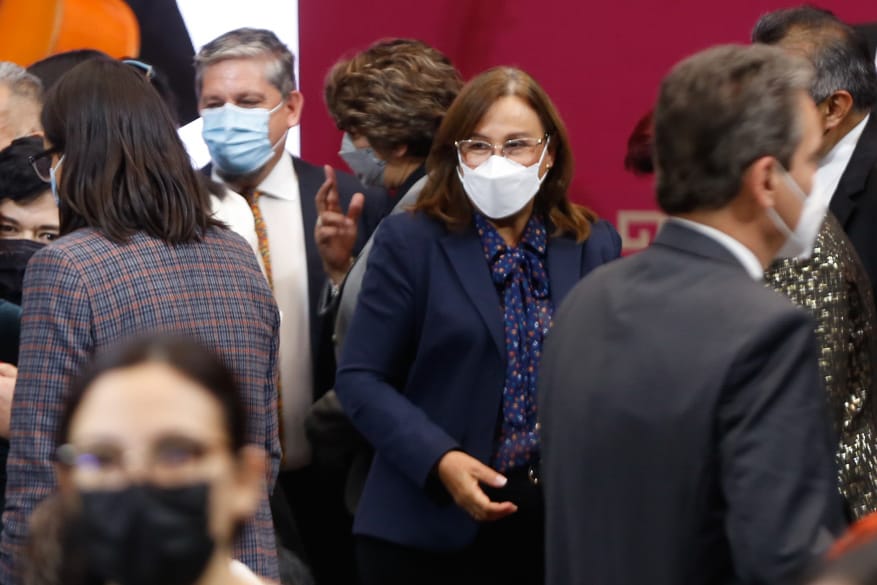 Se le pudo ver en compañía de Rocío Nahle, secretaria del Trabajo federal; Delfina Gómez, secretaria de Educación Pública, y de Luisa María Alcalde, secretaria del Trabajo y Previsión Social.
