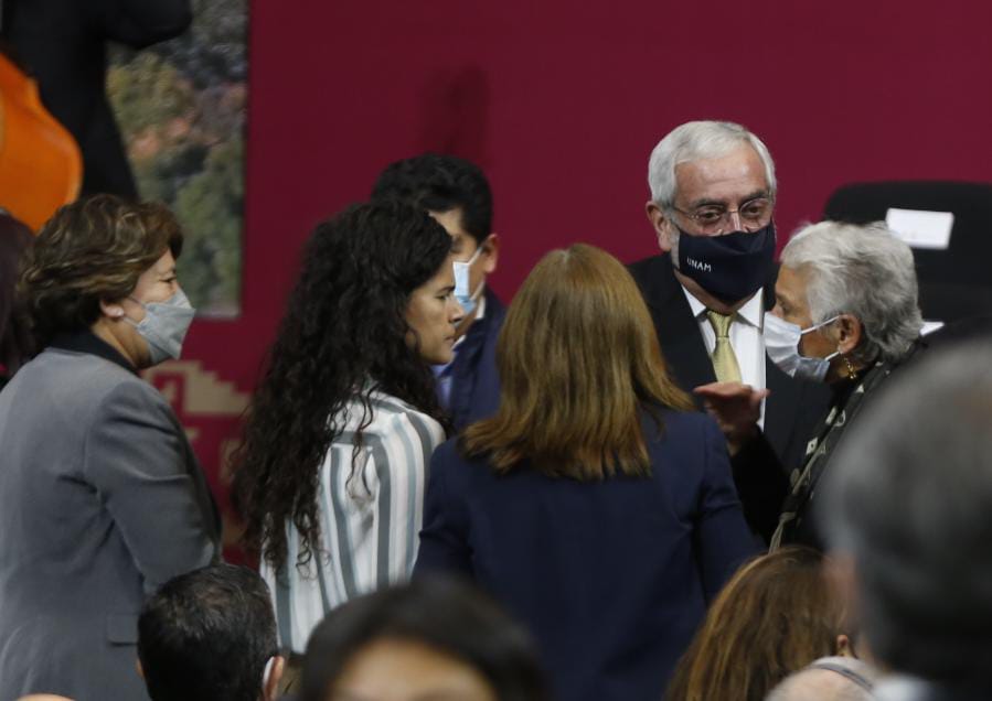 El rector de la Universidad Nacional Autónoma de México, Enrique Graue Wiechers, quien entró antes de la mandataria.